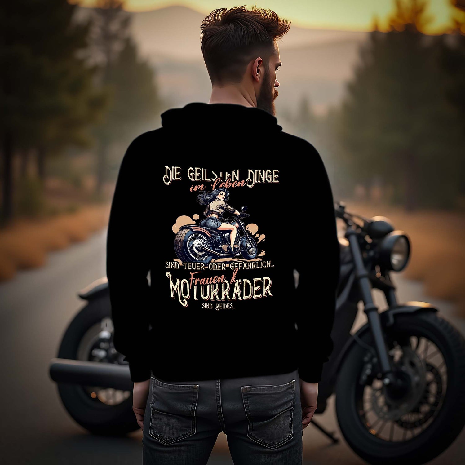 Die geilsten Dinge im Leben sind teuer oder gefährlich – Frauen und Motorräder sind beides - Biker Hoodie