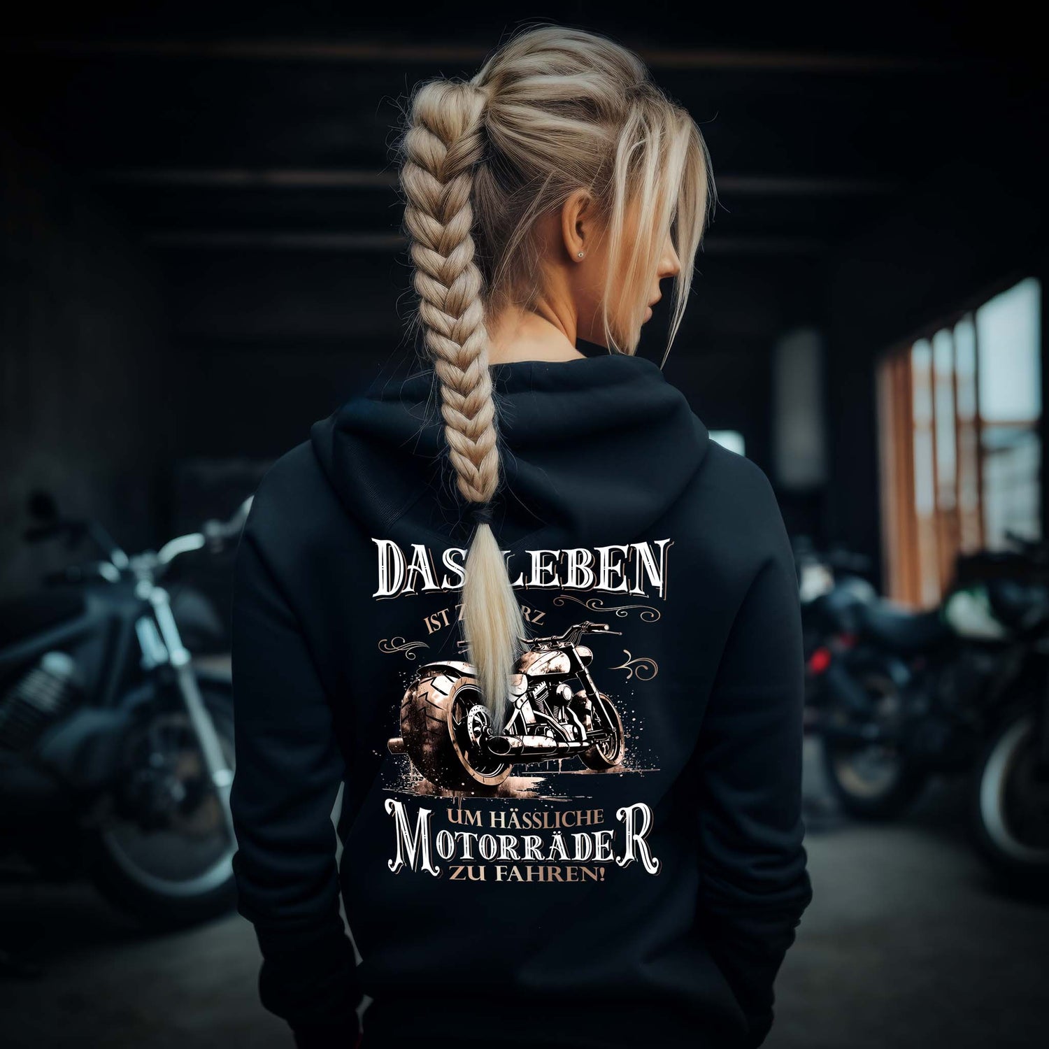 Das Leben ist zu kurz, um hässliche Motorräder zu fahren - Motorrad Hoodie Damen mit Back Print