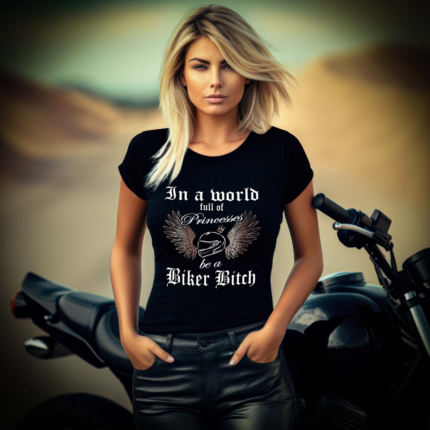 Hol dir jetzt das "In a World Full of Princesses, be a Biker Bitch" - Shirt und sei die Verkörperung von Freiheit und Selbstbestimmung auf zwei Rädern!